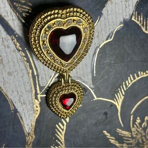 Vintage Victoria’s Secret oversized romantic red heart CZ gold Collectible pin