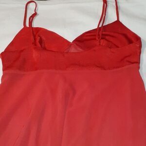 Its a cute VS camisole top similar to the Unif Angel. Its a really vibrant, sexy red. The bodice is solid, & looks like silk but its polyester & easier to deal with. The body is a semi-sheer material (pic 8 shows my tattooed arm under it)