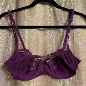 Vintage Victorias Secret Plum Purple Lace Unlined Demi Bra 34C
