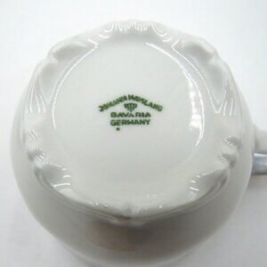 Vintage Johann Haviland Teacup Vienna State Opera Cup Saucer Set Gold Trim Floral Design Plastic Stand Made in Bavaria Germany. Elegant porcelain cup and saucer set featuring Vienna State Opera artwork, gold floral accents, and a durable Westland Plastics display stand.