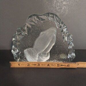 This exquisite Viking glass praying hands paperweight is a timeless piece of art, embodying serenity and grace. Handcrafted with meticulous detail, perfect for adding a touch of elegance to any space.