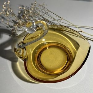 Vintage Viking Amber Elegant Heart Shaped Glass Swan Dish