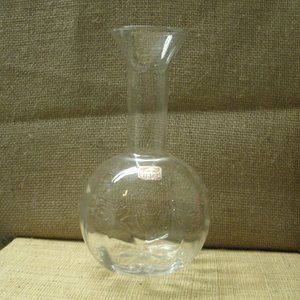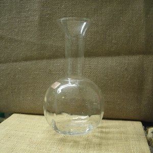 Vintage Viking handmade blown glass vase. Clear. Original sticker still attached. Round bottom has some panel lines around inside that show through & help catch light. 8 1/4 inches high, opening diameter about 2 3/4 inches. Bottom diameter about 4 1/4 inches. Good condition, no chips or cracks. Great for collecting or using.