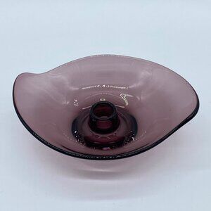 A stunning mid-century modern Viking Epic amethyst glass candle holder dish featuring an abstract form in a rich purple hue. Perfect for adding a touch of vintage elegance to your home decor.