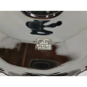Up for sale is this vintage black amethyst glass serving platter produced by Viking Glass. It measures about 11" across. The center handle features a stylized dolphin/fish figure. It is in very nice condition with no chips or cracks that I can see. I did note a slight rough spot on one of scallops. I have tried to show this in the photo. Still has its original sticker from Viking. As always, thank you for your interest. Good luck, and happy buying!