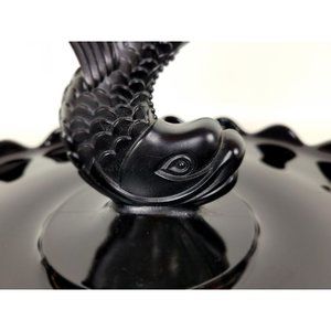 Vintage Viking Glass Black Amethyst Dolphin Fish Serving Tray Platter 11"