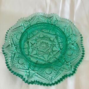 Keywords: butter dish, green glass, vintage butter dish, pressed glass, starburst pattern, covered butter dish, retro kitchen, farmhouse decor, vintage kitchen, green glassware, decorative butter dish, glass butter dish with lid, collectible glassware