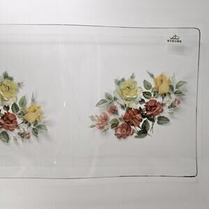 Vintage Viking Glass Hand-Painted Floral Serving Platter Tray Mid-Century Modern
