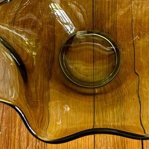 This striking vintage Viking Glass handkerchief bowl features a dramatic four-point design, hand blown with beautiful fluidity and form. The elegant, sculptural waves create movement and dimension, making it a standout mid-century art glass piece perfect for display or use.