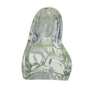 This exquisite glass figurine showcases a serene depiction of the Virgin Mary, masterfully crafted by Viking. The transparent glass embodies purity, accentuating the Madonna’s delicate features and spiritual presence. This piece is ideal for collectors of religious artifacts or those seeking a meaningful decorative item imbued with craftsmanship and elegance.