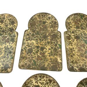 Beautiful vintage set of 6 drink trays from Viking Import Japan, featuring an ornate Florentine-style design with birds and floral detailing. Perfect for elegant serving or display, these trays showcase classic mid-century craftsmanship and decorative charm.