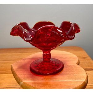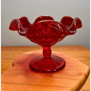 Vintage Viking Ruby Red Georgian Honey Comb 6.5" Ruffled Footed Bowl/Compote, Sh