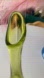 This is a vintage Mid-Century Modern green Viking glass swung bud vase.