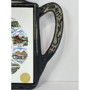 This vintage Villeroy & Boch trivet features a unique design inspired by Switzerland, as indicated by the words "Suisse," "Schweiz," and "Svizera" on the item. The trivet is 6 inches in height and width, making it suitable for use with teapots or other hot serving dishes. Made in Switzerland, this trivet is a stylish and functional piece for any kitchen or dining room, reflecting the quality craftsmanship and design that Villeroy & Boch is known for.