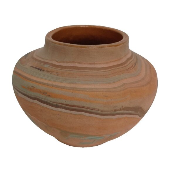 Vintage Vintage Native American Pottery Vase Clay Swirl Design Handmade Art