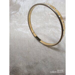 This preloved vintage Swarovski crystal bangle bracelet features a charming goldtone and silvertone design, perfect for adding a touch of elegance to any outfit. this has some fine scratches from usage can be buffed