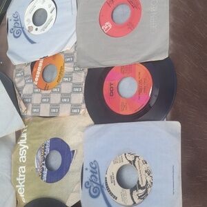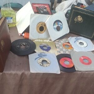 Assorted vintage vinyl records with original sleeves. Perfect for collectors and music enthusiasts.
