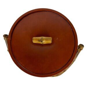 Vintage Vinyl Tropical Wood Handle Ice Bucket With Lid Barware Tiki Man Cave