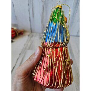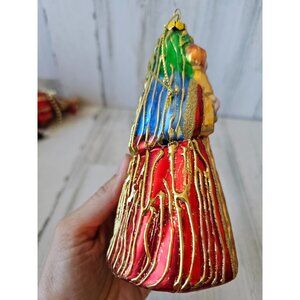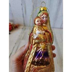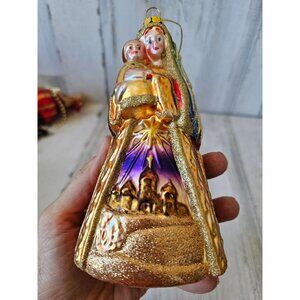 Vintage Virgin Mary Jerusalem Bethlehem grilled glitter glass ornament Xmas tree