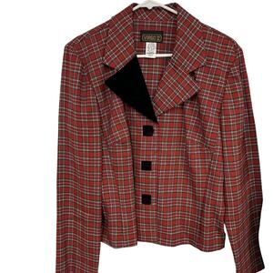 Vintage Virgo II USA Red Plaid Cotton Blend Blazer Suit Jacket Size 12 Women's