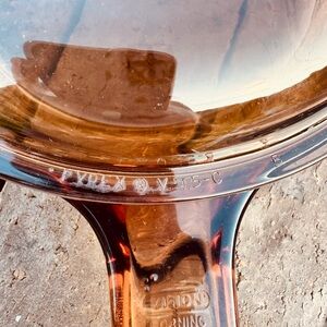 Elegant brown glass skillet. Comes with matching lid. Perfect for cooking and serving.