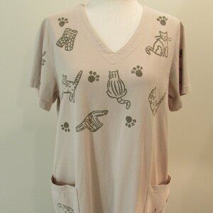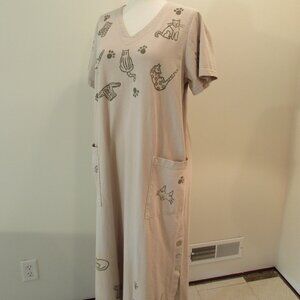 Vintage Viva City Beige Cats/Clothes Cotton Maxi Pockets XL