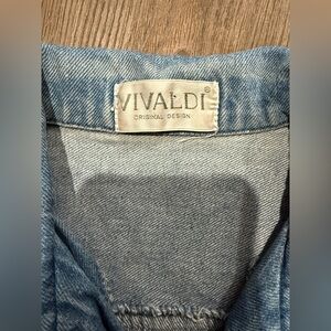 Authentic vintage Vivaldi denim vest from the late 80s / early 90s. Light wash blue denim with a button-front closure, chest flap pockets, and structured seams for a flattering fit. Cropped length makes it perfect for layering, western styling, or Y2K outfits.