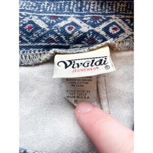 Vintage Vivaldi Jeanswear Blue Patterned Cotton Pencil Skirt Size 8