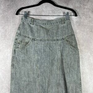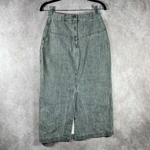 Vintage Vivaldi Pencil Skirt Women 10 Gray Denim Midi Back Slit Pockets Y2K 90s