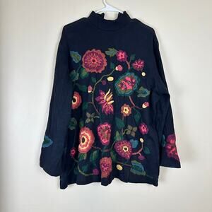 Vintage Vivien Tam Embroidered Sweater Jacket Black Long Sleeve Small-XL