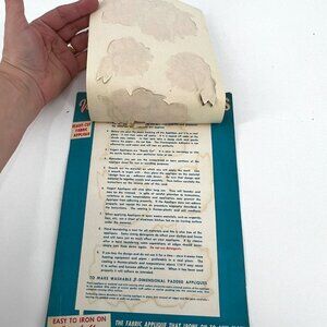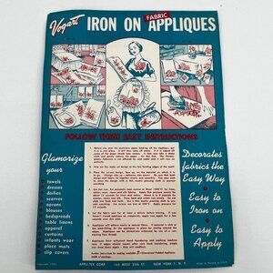 Vintage 50s fabric iron-on appliques. Glamorize your towels, dresses, doilies, scarves, aprons, blouses, bedspreads, table linens, apparel, curtains, infants wear, place mats, slip covers. Decorates fabrics the "Easy Way" - easy to iron on, easy to apply.