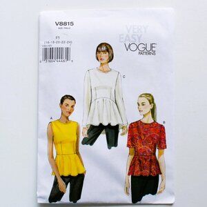Vintage Vogue Sewing Pattern V8815 Peplum Tops 16-18-22-24 F5 Very Easy 2012