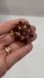 Vintage Volcano Rivoli Red Pink Rhinestone Gold Tone Filigree Brooch. Approximately 1.75 inches in size.