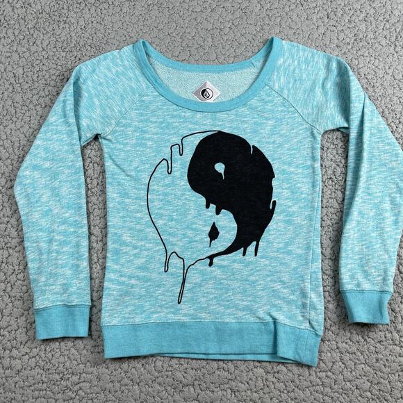 Vintage Volcom Ying Yang Sweater Womens XS Blue Cold Shoulder Stretch