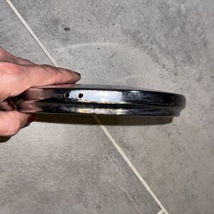 Features: Two sets of two small holes on the side (approx. at 5 and 11 oclock relative to emblem)