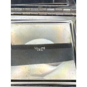 The Vintage Volupte 1940's Makeup Compact with Puff in a gold tone over brass is a collectible piece from the United States. This compact exudes a sense of nostalgia and elegance with its retro design from the 1940s. The compact is not only a functional item for storing and applying makeup, but also a decorative piece that adds a touch of vintage charm to any vanity or dressing table. The compact's compact size of 3 inches makes it a convenient and stylish accessory for any makeup enthusiast or collector of vintage beauty products. It comes with it's orginal puff and mirror. It is in very good vintage condition, It weighs 4.9 ounces.