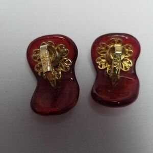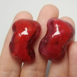 Vintage Vouge Jewelry Red Wavy Clip On Earrings, Retro 70s 80s Style, Estate