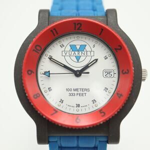 Vintage Vuarnet Swiss Made 38mm Date Watch Fiber Glass Bezel with New Battery