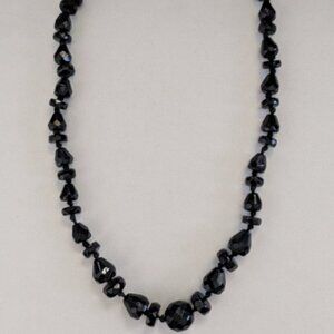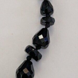 Vintage W Germany MCM Black Faceted Glass Beaded Individual Knot Necklace