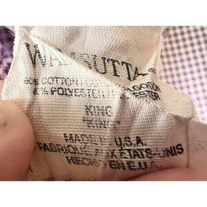 This is a pair of Vintage Wamsutta King Pillow Cases in Purple Gingham, made in the USA with 60% cotton and 40% polyester.