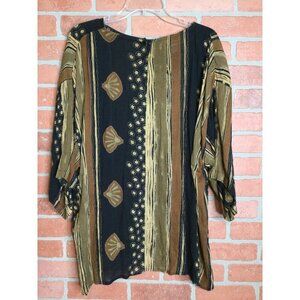 Vintage WAVES Rayon Tunic Top Made In India Seashell Stripes Size L