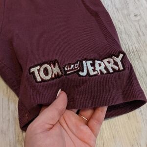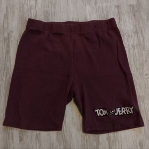 Tom and Jerry, Tom & Jerry, Mouse, Cat, Vintage, Stretch, Comfy, Women, Women's, Woman, Biker Shorts, Biker, Stretchy, Lounge, Loungewear, Comfy, Comfortable, Cozy, Purple, Burgundy, Embroidery, Embroidered, Ribbed, Knit, Knitwear, Shorts, Size L, Size Large, Active, Activewear, Sporty, Sport, Cartoon, Athleisure, Retro, Cartoons, Warner Bros, Warner Brother's, Cartoon Network, Disney, Unisex, Casual, Summer, Spring, Vintage, 90s, Y2K