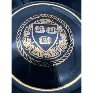 Vintage W.C. Bunting Co Harvard Veritas Black & Gold Ceramic Ashtray 4.5" × 6"