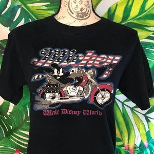 Vintage WDW Women's Small Mickey Mouse 90s Patriotic Motorcycle Tee