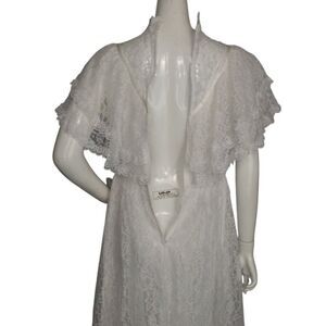Vintage WEDDING Dress, 8, White Lace, Drape Shoulders, High Collar, Sleeveless