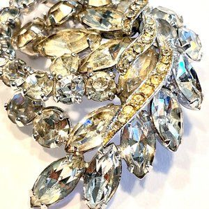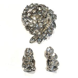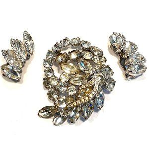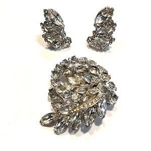 Vintage WEISS Marquise Rhinestone Silver Tone Brooch and Clip-on Earrings Set