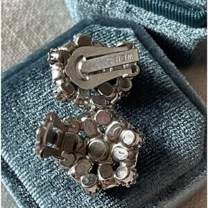 These vintage estate earrings are a must-have for any jewelry collection. Made by the renowned Weiss brand, these clip-on earrings are perfect for those who do not have pierced ears. The earrings are made of high-quality rhinestone material, which adds a touch of glamour to any outfit. The closure is secure, ensuring that the earrings stay in place throughout wear. Don't miss out on the chance to own a piece of history with these vintage Weiss earrings.