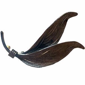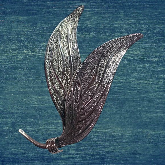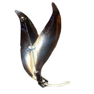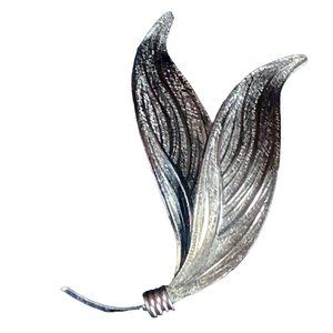 Vintage WELLS .925 Sterling Silver Double Leave Pin / Brooch