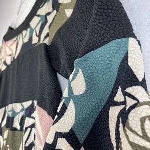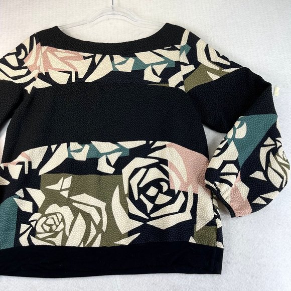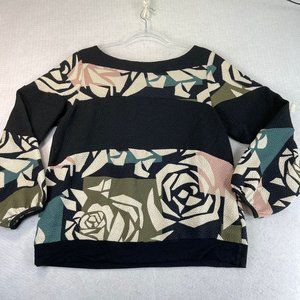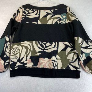 Vintage WESTON Womens XL Black Abstract Floral Multi Long Sleeve Sweater