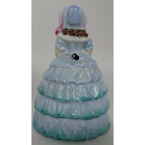 Up for sale is this vintage Southern Belle bell produced in England by W.H. Goss. She is wearing a blue multi-toned dress with a pink ribbon on her bonnet. Stands about 3 1/2" tall. She is in nice condition with no chips, or cracks that I can see. Nice vintage bell overall. As always, thank you for your interest. Good luck, and happy bidding!